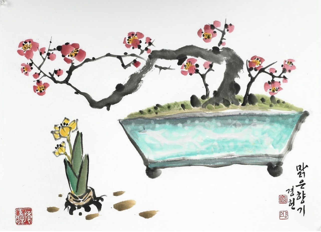 Elle a été fascinée par le peinture des lettres, ce qui est un genre traditionnelle coréenne qui exige que la poésie, l’écriture et la peinture soient synchronisées, et elle s’est donc concentrée sur ce genre.