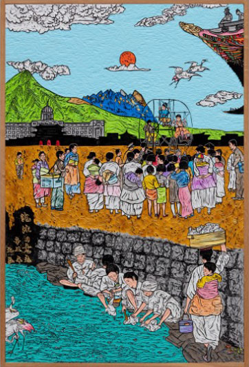 Les 17 peintures sur bois gravé présentées ici sont le fruit de précieuses heures de week-end passées dans le studio et cela pour 7 ans pendant que Won travaillait chez Samsung. Les délicates et très détaillées imageries de ces 17 oeuvres s’unissent pour raconter l’interprétation du chemin culturel, historiquement tumultueux, de la Corée selon Won.